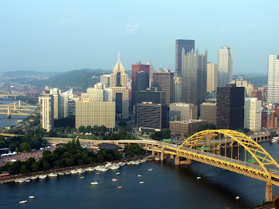 The other element in the banner is presumably the old US Steel Building, built in the 1970s as a symbol of America's corporate-industrial might, and still Pittsburgh's tallest building. Its kind of an impressive edifice, especially up close.